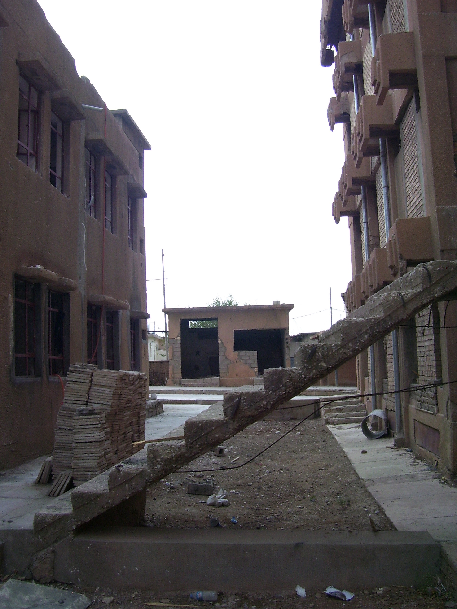 The actual museum of Amna Suraka was closed, so we wandered around the other pock-marked buildings where prisoners were held, packed in tight. The bottom floor was awash in red light, and dedicated to the victims of Halabja. Large pictures of the victims were posted on the walls.