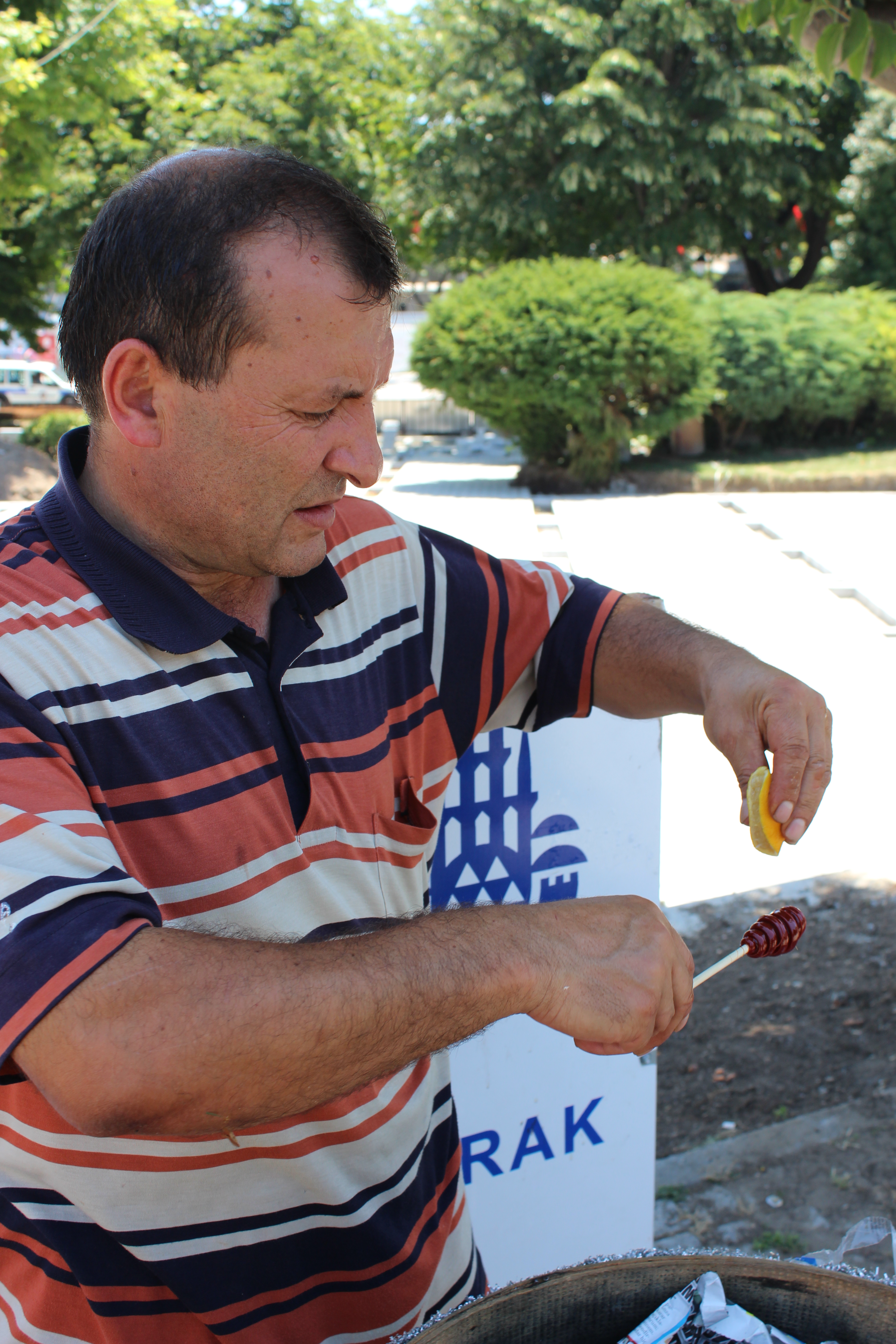 New Mosque.New Mosque.A sweets vendor. He had six flavors of a toffee-like candy. I told him I wanted strawberry flavor. So he took a stick and wrapped a bunch of the toffee around it and added lemon. It was extremely sticky.My favorite simit (the round sesame bread) vendor.Wall patterns at Topkapi.Wall patterns at Topkapi.Actual original Egyptian-Greek obelisk in a hippodrome in Istanbul. The horses would race out of one point, then turn around a set point and return to the starting gate. An out-and-back course. For the BEST narrative of an ancient chariot race, see book 23 of the Iliad.Spectators at the base of the obelisk watching the chariot races.A secondary horse-race obelisk. In the foreground is the serpent column, a tripod built to commemorate Greeks who died fighting the Persians at the battle of Plataea. Water was kept around its sunken base (you can see that the column isn’t built at ground level – rather, it’s built a few meters below) in order to keep vermin away from the holy column.Hagia Sofia’s falling down, falling down, falling down. Hagia Sofia’s falling down, because the structure’s too heavy for its foundations, my faiiiiir lady.Hagia Sofia. Was a church, then a mosque (hence the Madonna & Child, as well as the Arabic), then to avoid all the nasty religious in-fighting, it was made into a museum.Hagia Sofia. Christian crosses under an Islamic pattern.Underground city. Woooooooo.Underground city. Medusa’s head. She doesn’t look so ugly to me.Blue Mosque. Apparently it looks like a flower when viewed from above.Blue Mosque.